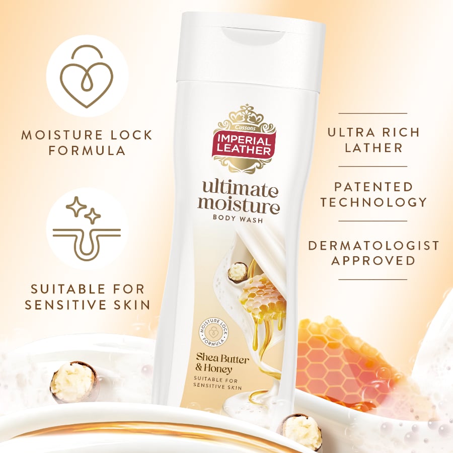 Enjoy softness that stays and fragrance that lasts with Ultimate Moisture Shea Butter & Honey Body Wash. Our unique moisture lock formula developed with patented technology is dermatologically tested and suitable for sensitive skin. Enriched with nourishing oil and skin conditioners, Ultimate Moisture helps to protect and maintain the skin barrier, leaving skin feeling soft, moisturised and delicately fragranced.